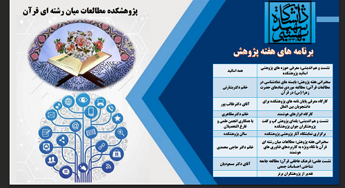 برنامه های هفته پژوهش در پژوهشکده مطالعات میان رشتهای قرآن