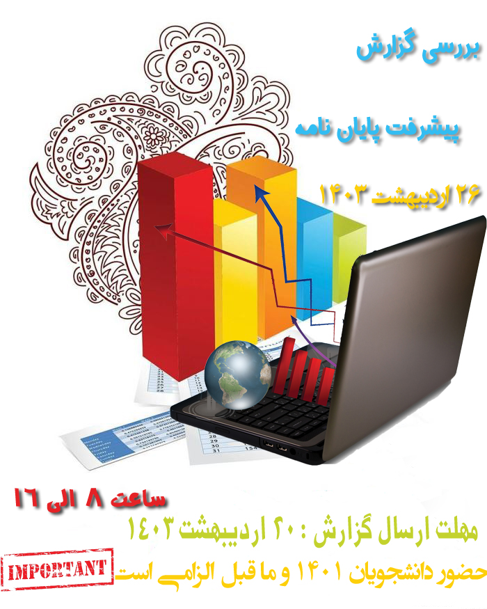 جلسه گزارش پبشرفت پایان نامه‌ها، چهارشنبه مورخ 26 اردیبهشت 1403 برگزار خواهد شد.