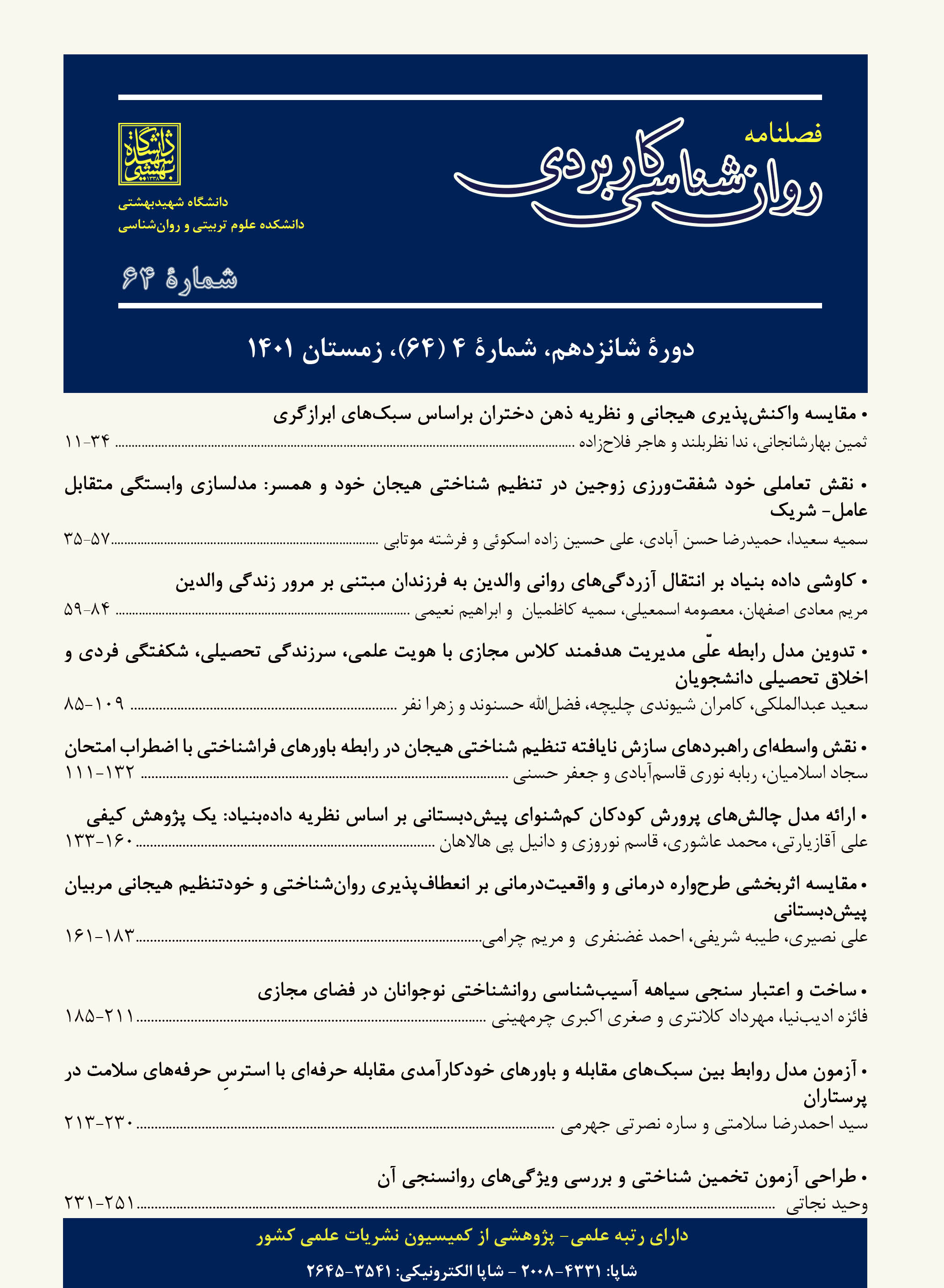 فصلنامه علمی و پژوهشی روانشناسی کاربردی