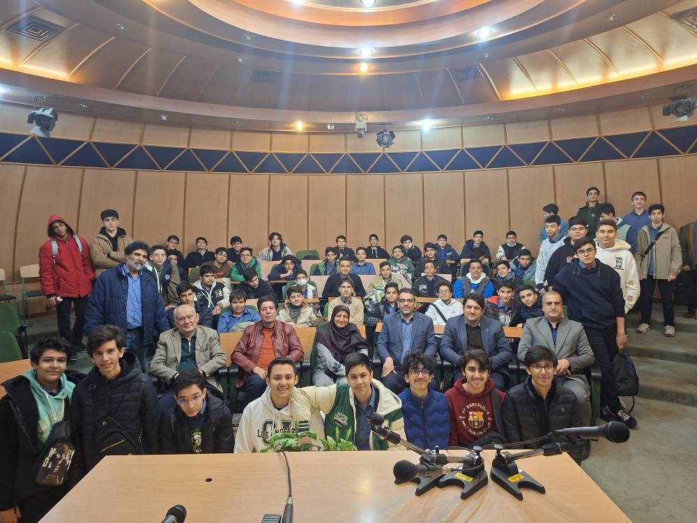 در جریان این مراسم، سرکار خانم دکتر حمیدی، معاون محترم پژوهشی و فناوری دانشگاه شهید بهشتی و دکتر حجاریان رییس محترم دانشکده علوم ریاضی، نیز حضور داشتند و ضمن گفت‌وگو با دانش‌آموزان، به پرسش‌های آنان درباره مسیرهای علمی، پژوهشی و آینده تحصیلی پاسخ دادند. ایشان با تأکید بر اهمیت پژوهش در دوران دانش‌آموزی، دانش‌آموزان را به تقویت روحیه پرسشگری، خلاقیت و علاقه‌مندی به فعالیت‌های علمی تشویق کردند.