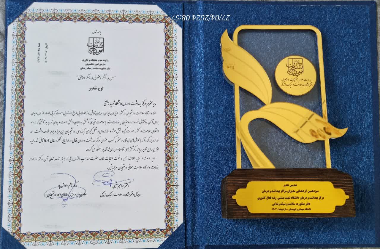 کسب عنوان مرکز بهداشت و درمان فعال کشوری معاونت دانشجویی